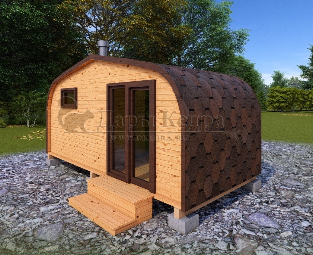 Бани бочки различных форм и размеров, как правило длиной от 2 до 6 метров. Это компактное и стильное решение для дачи или загородного дома.